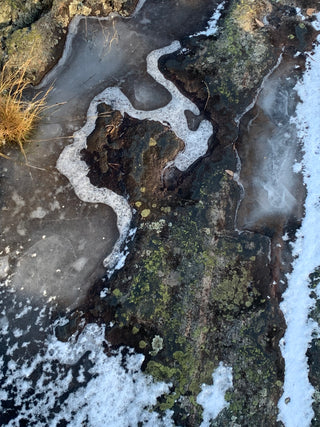The pattern for our lovely wool shawl is inspired by a photo we captured during a wintry day in February in the archipelago, where the ice formed a delicate blanket over the rocky landscape.